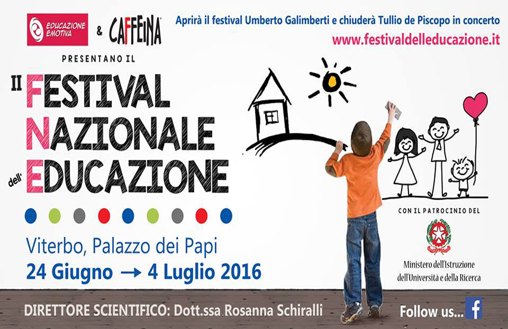Si apre con il loro intervento il 24 giugno alle 17.30 a Palazzo dei Papi l’edizione numero due anno 2016 del Festival dell’Educazione, evento nell’ambito di Caffeina Festival che si concluderà il 4 luglio. In successione il direttore scientifico la Dottoressa Rosanna Schiralli che spiegherà “Quello che i genitori non dovrebbero fare mai ai propri figli. Da subito”-