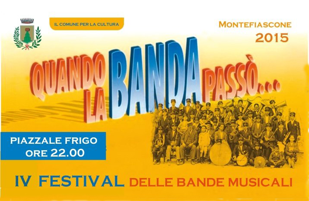Torna il Festival delle Bande Musicali “Quando la Banda passò…” L’appuntamento, che quest’anno festeggia la quarta edizione, si terrà dal 22 al 25 agosto 2015. Bande Musicali invaderanno la bella città regalando allegria al ritmo di musiche tradizionali e nuove melodie. Il grande palcoscenico naturale, di Piazza Frigo accoglierà gruppi bandistici provenienti dalla Provincia.