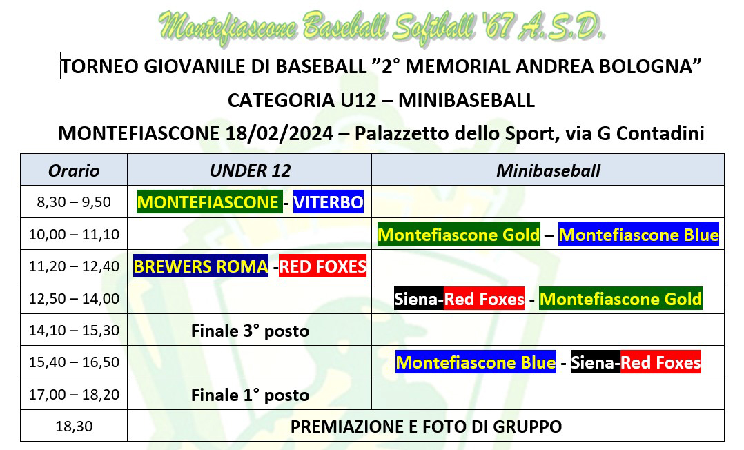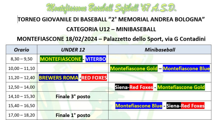 Per il Minibaseball il Montefiascone parteciperà con due squadre, che saranno formate in modo equilibrato, oltre ad una squadra mista formata dai romani dei Red Foxes e dal Siena BSC.