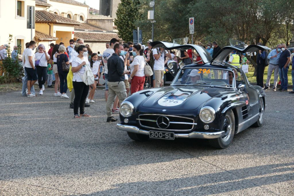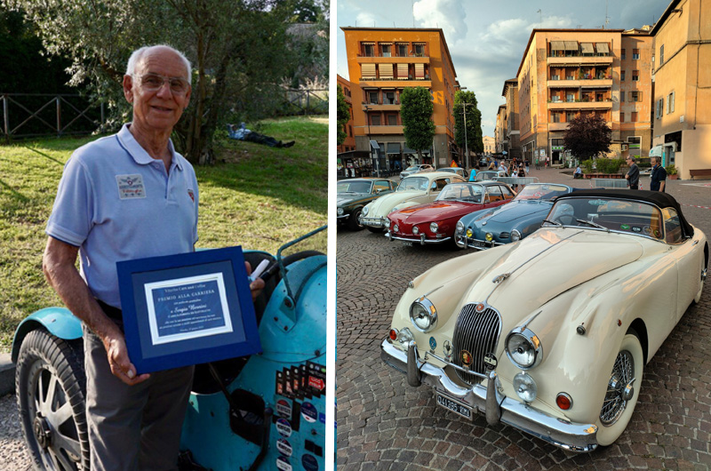 Fotogallery di una giornata davvero particolare attraversata dal convoglio della Freccia Rossa, con gli equipaggi della corsa più affascinante del mondo che ne ha attraversato i luoghi suggestivi, giovedi 17 giugno, stavolta il programma si è svolto di pomeriggio-sera con protagonista il capoluogo, Viterbo, nei suggestivi scorci della città antica.Le auto hanno attraversato il Villaggio Mille Miglia al Sacrario per essere ammirate da ferme e da vicino.Le prime vetture a giungere nella città dei Papi le circa 100 Ferrari moderne partecipanti al Ferrari Tribute 2021, arrivate intorno alle 18.00 seguite dalle veture storiche in gara.Intorno alle 21 lo spostamento degli equipaggi a Piazza San Lorenzo per la cena di gara, con piatti esclusivi della cultura gastronomica viterbese, curati dallo chef Francesco Ciucciarelli. dopodiché la sfilata a Piazza del Plebiscito per il pubblico. Momenti di grande piacere al Villaggio Mille Miglia in piazza dei Caduti dove sono accorsi tanti appassionati . Una giornata densa di emozioni in cui l’elenco dei volti noti significativo ma nelle varie tenute di gara è stato difficile da intercettare.Trai i vip Roberto Giolito, Head of Heritage di Stellantis, affiancato dalla conduttrice televisiva Camila Raznovich. Un pezzo da novanta l’Alfa Romeo 1900 C Super Sprint del 1956, guidata da John Elkann, presidente di Stellantis e Ferrari, che è tornato alla 1000 Miglia accompagnato dalla moglie Lavinia Borromeo.Alfa Romeo è il brand più rappresentato con 50 vetture partecipanti: seguono Fiat (40) e Lancia (31). Dopo l’Italia, con 292 driver, il maggior numero di partecipanti proviene da Paesi Bassi (146) e Germania (80).Ermanno De Angelis e Nunzia Del Gaudio alla guida di una vettura “speciale”, una OM 469 Sport del 1922: la più “vecchia” auto in gara di questa edizione della Freccia Rossa la n.8. E’ uno dei gioielli della collezione del Museo Nazionale dell’Automobile di Torino, restaurata da una realtà viterbese di eccellenza come l’officina Bontà Classic Garage.Riconoscimento di professionalità con targa consegnata all’elettrauto viterbese Sergio Bernini, classe 1941, attività la sua avviata nel 1957 a piazza della Rocca.Ottanta anni suggellati da una inarrestabile passione per le auto e per i motori.