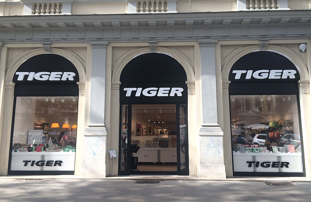 Il marchio Tiger nasce a Copenhagen nel 1995, ed è presente con oltre 556 negozi in tutto il mondo. In Italia Tiger apre il suo primo Store a Torino e in Centro Italia nel 2012 arriva a Roma, dove oggi conta 14 punti vendita.