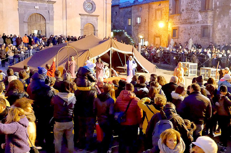 Sono i numeri effettivi registrati il 26 dicembre scorso dei visitatori giunti nel borgo incantato della Tuscia per rivivere lo spettacolo della Natività, uno spettacolo che lascia ogni volta il visitatore senza fiato. “Quest’anno ricorrono i 25 anni dalla prima rappresentazione e non possiamo non ricordare il primoideatore e realizzatore, il compianto Alberto Macchioni che è riuscito a vincere la sua scommessa: Civita è il luogo ideale per rappresentare la nostra storia più bella, quella della nascita di Gesù”Sono le parole del sindaco Francesco Bigiotti.