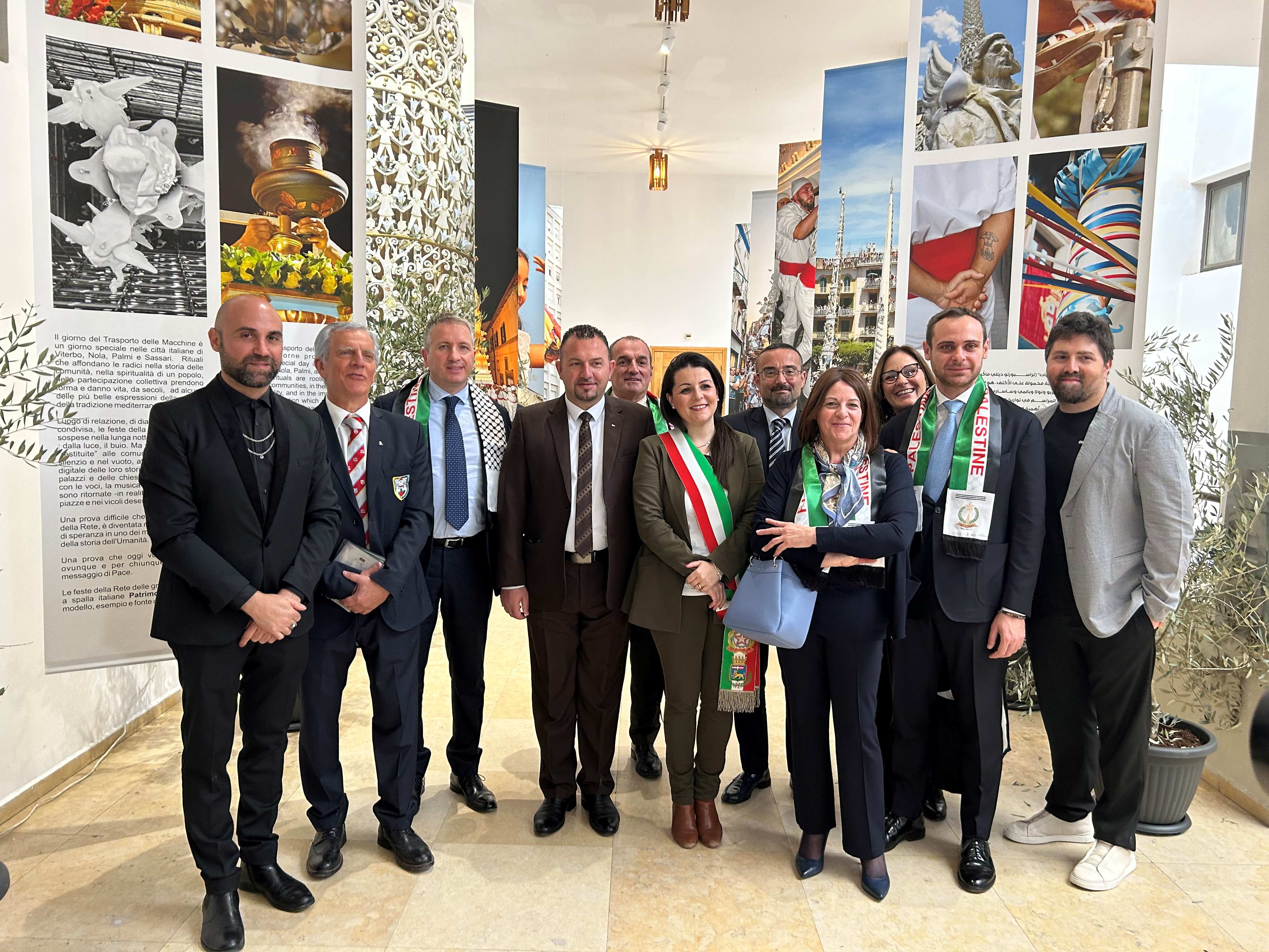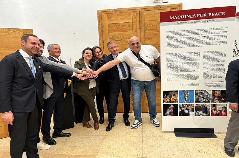 È stata inaugurata lo scorso 4 aprile a Betlemme, in Terra Santa, la mostra “Machines for Peace” che la Rete delle grandi Macchine a spalla italiane realizza con il patrocinio del ministero degli Affari Esteri e Cooperazione, della Commissione Nazionale Italiana per l’UNESCO, del Consolato d’Italia a Gerusalemme, del Comune di Betlemme, in collaborazione con l’Istituto Centrale per il Patrimonio Immateriale del ministero della Cultura e con la partecipazione dei comuni e delle diocesi e arcidiocesi delle città della Rete – Viterbo, Sassari, Palmi e Nola – della Federazione Nazionale dei Club per l’UNESCO, del Rotary International e F.R.A.C.H., di Meraviglia Italiana.