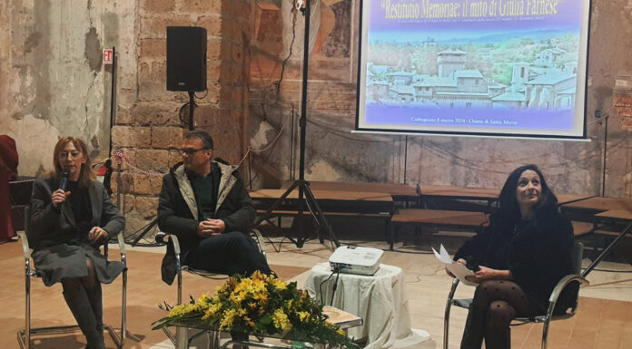 Bella, intelligente, intrigante, misteriosa, fascinosa. Donna, nel giorno dedicato alla Donna. E non per caso. Ecco Giulia Farnese, Giulia la Bella, che si materializza a cinquecento anni dalla morte nella sua Carbognano per tagliare il nastro a un festival che vuole inaugurare un nuovo Rinascimento. Per il paese e per la Tuscia. Di Rinascimento storico la nobildonna fu tra le figure femminili più illustri fino ad essere l’intima tra le intime di Papa Alessandro VI° Borgia. Un’autentica icona dei tempi. Solo una leggerezza umana l’ha condannata per secoli alla cosiddetta “Damnatio memoriae”. A Carbognano, dove visse per venti anni e di cui fu illuminata amministratrice, è tornata spiritualmente venerdi 8 marzo sera – per la festa della Donna –  nella Chiesa di Santa Maria al fine di riprendersi il maltolto, attraverso una legittima “Restitutio memoriae”. Che poi è il titolo di una serie di iniziative – con tanto di logo realizzato da Roberta Mezzabarba – che si protrarrà sino alla fine dell’anno e che è stata illustrata dagli interventi di tanta bella gente. Il sindaco di Carbognano Agostino Gasparri, il presidente della Provincia Alessandro Romoli, il consigliere regionale Daniele Sabatini, Tiziana Lagrimino di St-Sinergie che ha elaborato il progetto, rappresentanti della rete di imprese “Rete di Giulia”, la soprintendente alle Belle Arti Margherita Eichberg. Perché storia e patrimonio in questo caso vanno ad integrarsi mirabilmente. La kermesse organizzata in onore di Giulia andrà a preparare l’apertura dell’austero castello della nobildonna quasi ermeticamente chiuso da secoli. E’ stata la soprintendente ad annunciare che entro la fine dell’anno una parte di esso potrà essere riaperto e fruibile al pubblico. E comunque andranno avanti i lavori fino al completamento dei restauri. Una buona notizia non soltanto per Carbognano, ma per tutta la Tuscia. Come ha ricordato il consigliere regionale Sabatini, sottolineando come il Giubileo metterà a disposizione della nostra provincia 24 milioni di euro: “Si tratta di spenderli nel migliore dei modi”.  Una trentina le iniziative che rientrano nel festival: pezzi di storia raccontati in convegni e film, passeggiate, aneddoti, fiere, mostre d’arte contemporanea e fotografiche, enogastronomia naturalmente. Un ventaglio di proposte che Giulia non soltanto avrebbe condiviso, ma sponsorizzato in prima persona.i