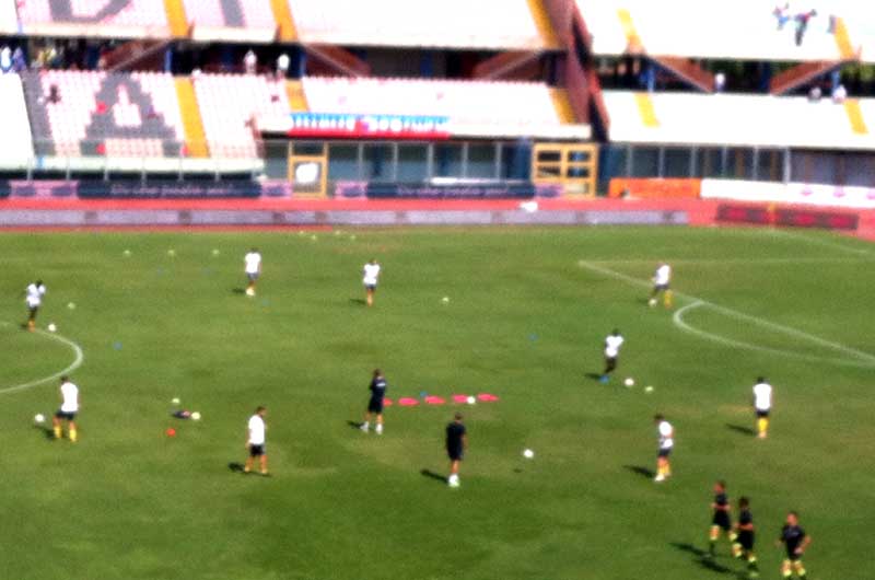 CATANIA – E’ un rigore arrivato dal nulla a regalare la vittoria agli etnei e costringere la bella, giovane e gajarda Viterbese di Lopez ad una sconfitta beffarda. Una partita giocata a testa alta, perfetta, rovinata da una decisione a lungo contestata dai gialloblù per un presunto fallo di……testa di Besea in area. Vigile, che tanto non ci sembra sia stato, ha subito indicato il dischetto senza consultare l’assistente vicinissimo all’azione. La partita è tutta qui, in un episodio poco chiaro che ha condannato la Viterbese che ha lottato ribattendo colpo su colpo alla quotata formazione di casa. Nel primo tempo un paio di occasioni per parte, nella ripresa un solo tiro in porta dei rossoazzurri, quello dal dischetto di Lodi. Senza Baschirotto squalificato, Palermo ancora ai box, De Falco fuori dopo pochi minuti e con Tounkara in campo solo per un tempo, i ragazzi di Lopez hanno giocato una partita impeccabile per atteggiamento tattico ed agonistico imbrigliando il Catania che ha avuto bisogno di un regalo di Vigile per avere la meglio.”Abbiamo iniziato con dei giocatori che avevano problemi fisici – esordisce Giovanni Lopez nella mixed zone del Cibali ai microfoni di Direttasport Viterbo – e abbiamo subito creato due importanti palle goal. Durante il primo tempo alcuni dei nostri giocatori hanno subito tre infortuni e abbiamo inserito in campo altri tre under. Siamo stati penalizzati dalla decisione arbitrale, lavoriamo tutta la settimana e dovremmo essere trattati come le altre squadre. Abbiamo perso senza subire un tiro in porta perché l’arbitro ha concesso il rigore per una palla in faccia a un nostro giocatore. Vorrei fare i complimenti ai miei ragazzi, hanno lottato su tutti i palloni contro una squadra forte come il Catania. Gli infortuni? De Falco l’ho tolto per non rischiare, Tounkara si è portato dietro una noia muscolare, mentre Bezziccheri ha preso una botta in testa, era anche ammonito e ho preferito toglierlo. Milillo è stato eccezionale, Pacilli è tanto che non gioca come Besea e Urso. Stiamo crescendo e stiamo migliorando partita dopo partita. Con tutti i giocatori in rosa e disponibili a giocare saremo una grande squadra e ci toglieremo grandi soddisfazioni.” Rammaricato anche il capitano Atanasov raggiunto sempre a caldo da Diretta Sport: “”Peccato davvero per il risultato ottenuto, perché anche oggi usciamo dal campo a testa alta. La mia ammonizione nasce da una protesta forse troppo animata, ma quando ho visto l’arbitro fischiare il fallo di mano ho reagito d’istinto. Il pallone ha colpito senza dubbio la faccia di Mama e non il braccio, perciò dispiace perdere per un episodio simile. Il gruppo c’è, è unito e lo abbiamo nuovamente dimostrato sul campo, con tanti ragazzi giovani che hanno giocato con personalità, dando il massimo ed aiutandosi l’uno con l’altro. Abbiamo affrontato a testa alta e senza paura una delle squadre più forti del nostro girone, perciò meritavamo almeno un pareggio”. Deluso e rammaricato anche Antezza: ““C’è tanto rammarico, abbiamo fatto un’ottima partita, sia sotto il profilo tecnico sia sotto quello della qualità e dell’intensità. Il rigore? secondo me non c’è stato alcun tocco di mano, ma purtroppo l’arbitro ha deciso di concedere il calcio di rigore. Eravamo messi benissimo in campo, sopratutto nel secondo tempo e nonostante l’episodio abbiamo continuato a giocare. Che siano under o over chi ha giocato oggi ha dato tutto e ha fatto una bella figura. Non è bello tornare a casa con zero punti dopo l’ottima partita che abbiamo fatto”. Intanto il presidente gialloblù Romani ha manifestato il proprio disappunto con un comunicato ufficiale: “”Sono indignato per quanto successo oggi al Massimino in occasione del calcio di rigore concesso al Catania. Giochiamo in un campionato professionistico e certi errori non sono tollerabili. Domani chiamerò personalmente e in via informale il Presidente Ghirelli per far presente quanto accaduto. Sin dall’inizio del campionato abbiamo subito ingiustizie arbitrali che non meritiamo, a partire dal rigore di Bari, fino all’arbitraggio nella gara casalinga con il Picerno. Ci vuole rispetto ed equità di trattamento poiché ci sono moltissime persone che lavorano ogni giorno per questa squadra e ciò che è successo oggi non è tollerabile. Nei prossimi giorni avvieremo ufficialmente una protesta per far valere i nostri diritti e per far sì che determinati errori non vengano più commessi”.