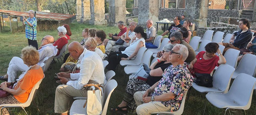 È un po’ l’alfa e l’omega di Vicino Orsini e del Bosco Sacro di Bomarzo. Una storia lunghissima, spesso ignorata, adesso riscoperta a cinque secoli di distanza dalla nascita dal nobile signore e uomo d’armi del paesino che sorge non lontano dal Tevere. Commemorazioni, incontri, festival, che insieme al personaggio stanno polarizzando l’attenzione, se ancora ve ne fosse bisogno, dei luoghi che ne segnarono l’esistenza. Ieri sera ancora un ricordo che però sfugge alla classica routine. Ferento. Per il ciclo “Tramonti”, è stato riproposto il racconto di un uomo e di un Sacro Bosco, in chiave più personale e aneddotico, attraverso le parole di Giuseppe Rescifina, intervallate dalla raffinata e suadente voce di Noemi Nori, accompagnata alla chitarra da Massimo Lattanzi. Un profumo di antico addolcito da una leggera brezza e dal profumo dolce della mentuccia. Un Sacro Bosco che Vicino volle per amore della virtuosa moglie Giulia Farnese (da non confondere con Giulia la “Bella”, anch’ella una Farnese, prediletta di Papa Alessandro VI° Borja e sorella di Papa Paolo III°) e che fu riscoperto alla metà del secolo scorso, una volta liberato dalle braccia tenaci della vegetazione. Tre ettari di terra disseminata di una trentina di sculture che furono realizzate con la pietra del posto, una cappella dove riposa la moglie di Vicino, una casetta in pietra costruita in pendenza. “Per ricordare a tutti che la vita non è sempre in equilibrio, così come credeva il gran signore”, ha ricordato Rescifina. Poi, nei primi anni Sessanta, la visita di Salvator Dalì e di Michelangelo Antonioni che rimasero esterefatti dal mistero e dalla bellezza del luogo. Perfino la nascita di una ipotesi, che tale rimane, di un legame con la Divina Commedia di Dante. “Vicino nell’immaginare il Bosco e le sue sculture sarebbe stato ispirato dal capolavoro del genio fiorentino”. Più verosimile il ringraziamento pubblico che il signore di Bomarzo rivolse a Papa Paolo III° per averlo fatto liberare dalle prigioni spagnole dove era finito dopo una sfortunata guerra. E ancora le lamentele dello stesso Vicino che veniva puntualmente bullizzato dal fratello Maerbale perché leggermente gobbo. Il nostro trovava consolazione tra le braccia della nonna. Piccole storie in una storia più grande, che termina il 28 gennaio del 1583 con la morte di Vicino, sepolto nella chiesa di Santa Maria Assunta a Bomarzo, a due passi dal palazzo dove abitò negli ultimi trenta anni della sua vita. Un profilo tanto interessante da ispirare, negli anni Sessanta, un libro dello scrittore argentino Manuel Mujica Lainez, intitolato semplicemente “Bomarzo”. Oggi edito dalla casa editrice viterbese “Sette Città”, che ne ha rilevato i diritti dalla Rizzoli. Vincenzo Ceniti, console del Touring Club Italiano, ospite della serata, quel librone lo ha letto tra i primi in Italia e lo ha mostrato con evidente orgoglio sul palco: “Questa è la prima edizione. E io ce l’ho”