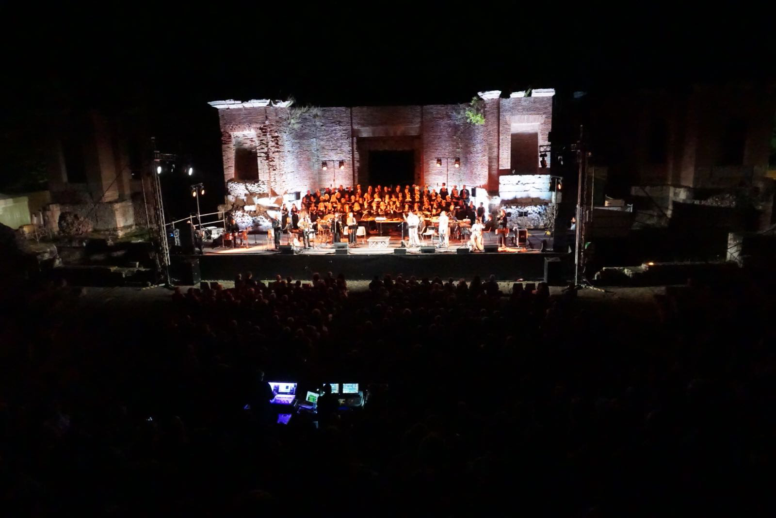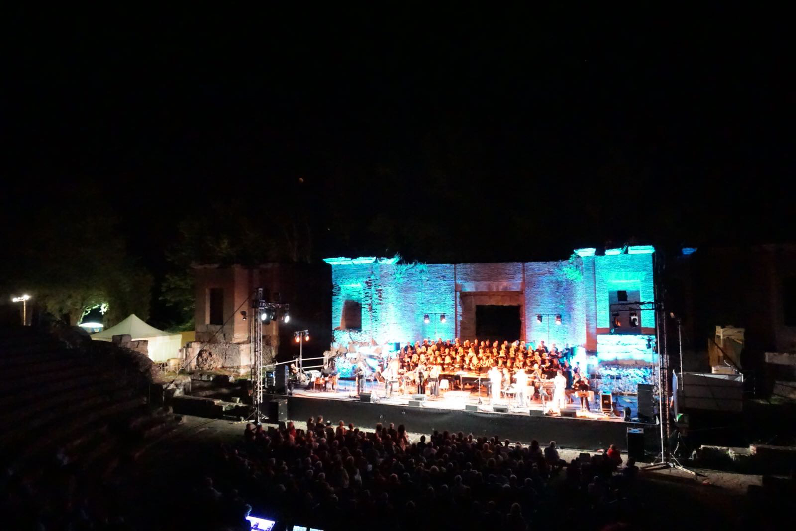 L’incontro tra la tradizione popolare e la musica colta ha richiamato finalmente un pubblico numeroso a Ferento che ha riempito tutte le gradinate. I Carmina Burana, prima di un’opera musicale, sono uno dei più importanti documenti poetici e musicali del Medioevo, raccolti nel Codex Latinus Monacenis. La partitura di Carl Orff integrata con le musiche e i canti medievali originali; l’unione di coro, pianoforte e percussioni sinfoniche con gli strumenti antichi e popolari. coro misto, coro di voci bianche ed orchestra del compositore Carl Orff .Cento persone sul palco tra cantanti, musicisti, solisti hanno reso la serata immemorabile grazie ad una musica di indubbio fascino  prodotta da un ensamble di grandissima levatura.