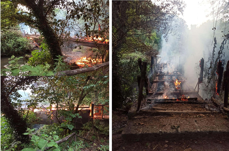 A fuoco il ponte del Parco Regionale Valle del Treja
