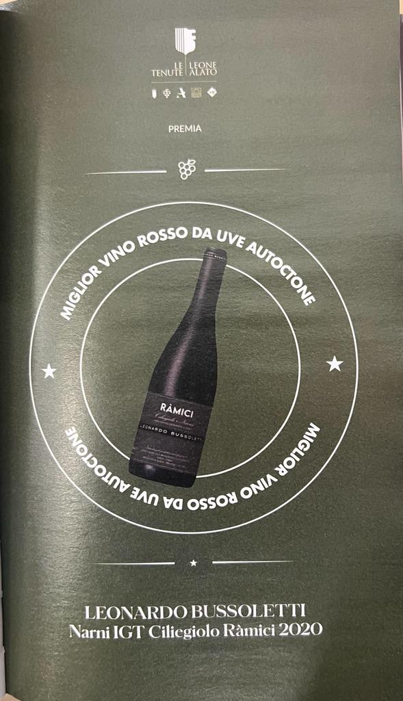 La cantina umbra Leonardo Bussoletti ottiene un nuovo e importante riconoscimento a livello nazionale: Ciliegiolo I.G.T. Narni Ràmici 2020 è stato eletto miglior vino rosso da uve autoctone dell’anno. Il premio speciale – della Guida I Mille Vini d’Italia 2023 Le Guide de L’Espresso a cura di Luca Gardini – è stato consegnato a Leonardo Bussoletti durante la cerimonia di premiazione, che si è svolta lunedì 26 giugno presso il teatro Manzoni a Milano.