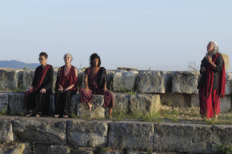 I fanciulli divini appaiono nel mito in luoghi impervi e inquietanti e, sopravvissuti a persecuzioni e violenze, alla fine sprigionano un’inaspettata forza numinosa e trasformativa: se Tagete nato dalle zolle accanto al mare rivela agli etruschi come predire il futuro, quest’anno lo spettacolo narra anche della giovane Ino che fuggendo dalla violenza omicida del marito diviene la bianca Leucotea, benefica divinità marina soccorritrice dei naufraghi. Il suo velo di schiuma marina salverà Odisseo dalla violenza dei flutti facendo risuonare il nostro cuore antico con le tragiche vicissitudini del Mediterraneo dei nostri giorni.
