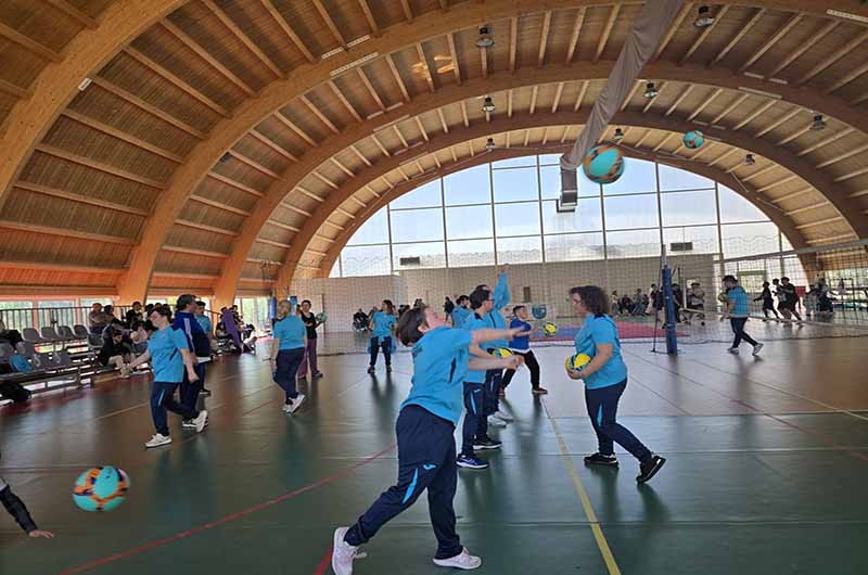 Nella foto: i giovani dell‘ASD Sorrisi che Nuotano Eta Beta in esibizione con la pallavolo