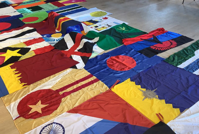 Simulacro di una bandiera per Internet Opera Collettiva  Escuela Moderna/Ateneo Libertario a cura di Nicoletta Braga. Palazzo Baronale, Università Agraria di Sipicciano.