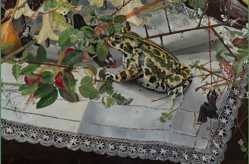 Salendo al secondo piano del Palazzo, sono esposti artisti interessati alla componente onirica e perturbante della realtà. A partire da Grazia Cucco (Amelia, 1965). Con il suo surrealismo mai artificioso, sempre spontaneo, popolato da miriadi di creature che si intrecciano alle trame della natura, rivelandone vizi e virtù. Contadini e insetti, fiori e frutti, suore e animali sono le visioni dell’inconscio, delle sue fantasie e dei suoi turbamenti. Anche l’espressionismo dei caleidoscopicisoggetti di Giannetto Fieschi (Zogno, 1921 – Genova, 2010) scava nella psiche, e ricerca sotto le stratificazioni delle esperienze quotidiane archetipi universali.