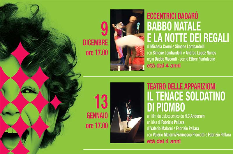 Il 13 gennaio sarà la volta del Teatro delle Apparizioni con “Il tenace soldatino di piombo”, un film da palcoscenico di Valerio Malorni e Fabrizio Pallara. Una reinterpretazione della celeberrima fiaba di Hans Christian Andersen che rivede protagonisti il soldatino di piombo e la sua ballerina.