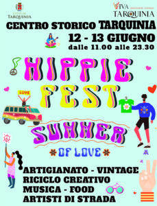 Il 12 e 13 giugno 2021, lo splendido centro storico di Tarquinia, città d’ arte, gioiello etrusco del viterbese, vedrà svolgersi per la prima volta il Festival Hippie, fortemente voluto dall’Associazione Culturale Viva Tarquinia e con il Patrocinio della Città di Tarquinia, e grazie al sostegno dell’ Amministrazione Comunale.