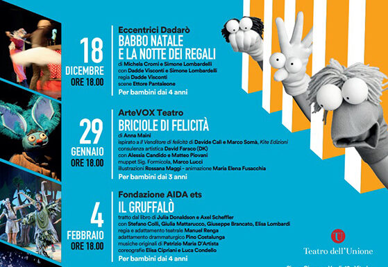 Il 4 febbraio ore 18 Fondazione AIDA ets presenta IL GRUFFALÒ, una commedia musicale per tutta la famiglia tratta dal bestseller di Julia Donaldson e Axel Sheffler. Quattro giovani amici si ritrovano in un bosco di notte raccontandosi storie paurose attorno al fuoco, tra cui quella di un mostro terribile dal nome assai noto ai bambini: il Gruffalò. Nello spettacolo le deliziose rime della scrittrice inglese si alternano a divertenti e originalissime canzoni scritte appositamente mentre gli attori indossano dei fantastici costumi che si rifanno alle meravigliose illustrazioni del disegnatore tedesco.