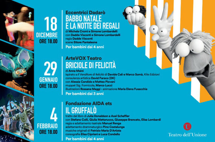 Si inizia il 18 dicembre alle ore 18 con BABBO NATALE E LA NOTTE DEI REGALI della compagnia Eccentrici Dadarò, liberamente ispirato a “Quella volta che Babbo Natale non si svegliò in tempo” di Thomas Matthaeus Muller. Ambientato nella notte della vigilia di Natale, quando con trepidazione i bambini aspettano l’arrivo dei regali. Purtroppo Babbo Natale non si è svegliato in tempo e i regali non sono ancora pronti, così con la sua fedele renna, tra divertenti gag e improbabili magie, decidono che al posto dei regali faranno, insieme a tutti i bambini, uno spettacolo spettacolare.