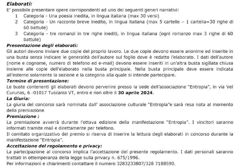 Restano poche settimane per prendere parte al Premio Letterario “Daniele Nardi”, giunto alla sua settima edizione e organizzato con il patrocinio del Comune di Tuscania dall’associazione culturale Entropia di Tuscania, in ricordo del giovane prematuramente scomparso.