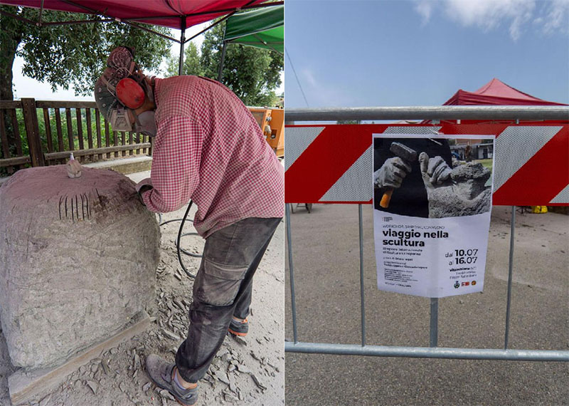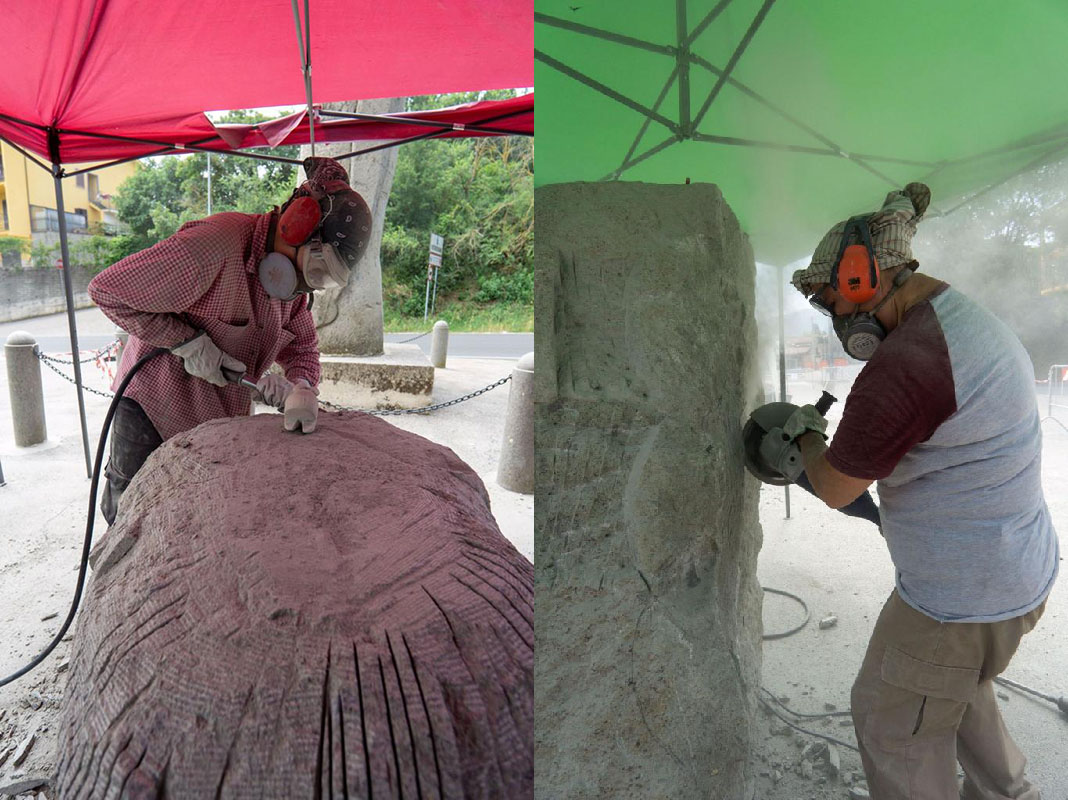 In questi giorni è possibile ed anche molto interessante osservare dal vivo i giovani studenti a lavoro sulle creazioni scultoree in quello che possiamo definire un cantiere aperto sul posto designato.