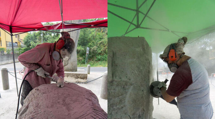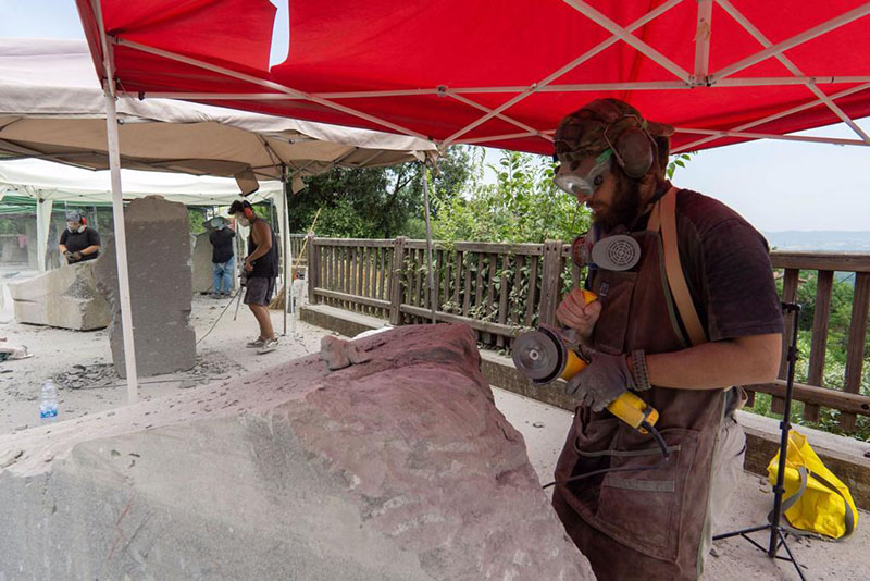 Gli allievi della Scuola di Scultura dell’ Accademia di Belle Arti di Roma:Jessica Pintaldi, Gabriele Fina, Liu Yuzhou, Karolina Konieczny, Francesco Pennacchi e Leonardo Mariani guidati dalla Professoressa Oriana Impei e dallo scultore Giancarlo Lepore hanno iniziato la realizzazione delle opere scolpendole sul peperino, pietra madre del luogo, i lavori si svolgono a poca distanza dal famoso Moai in Largo “Padre Ettore Salimbeni” a Vitorchiano dove è stato allestito lo spazio dedicato al Simposio sul Peperino.