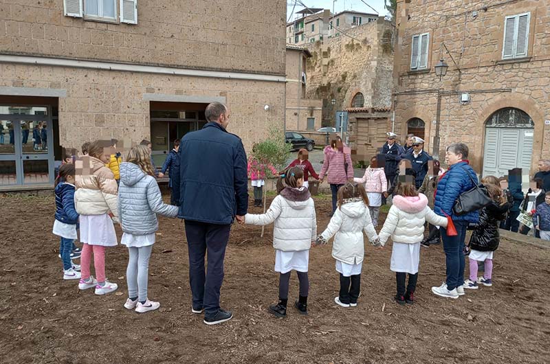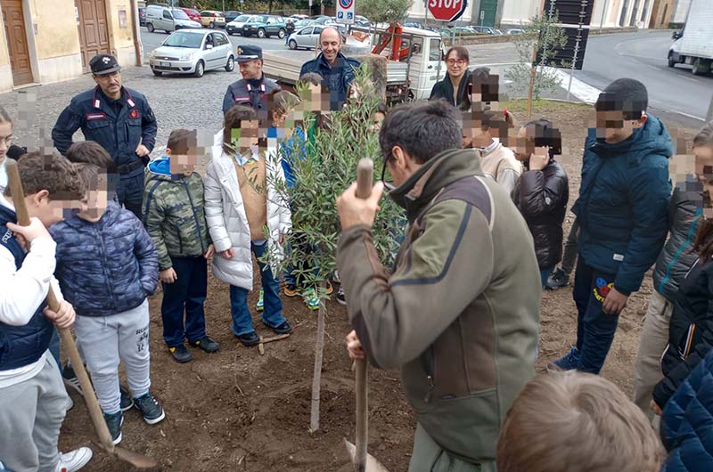 Alla presenza della sindaca Alessandra Terrosi, dell’assessore all’ambiente Glauco Clementucci e della consigliera delegata all’istruzione Patrizia Rosatelli e con la partecipazione delle classi della scuola primaria e della scuola secondaria di primo grado dell’Istituto Omnicomprensivo Leonardo da Vinci, sono stati piantati due nuovi olivi nell’area verde compresa tra Via Roma e la Cassia e altri tre olivi nell’area verde in località Madonnina, luogo dove in precedenza erano state rimosse alcune conifere divenute pericolose.