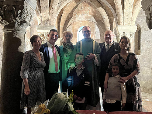 Domenica da inserire nel proprio album personale di ricordi per Carlo Del Segato e Morena Piazzai che all’interno della stupenda e suggestiva cornice della Cripta Basilica del Santo Sepolcro di Acquapendente hanno festeggiato i 50 anni di matrimonio. A pochi metri dall’edicola che ospita la riproduzione più antica in Europa della pietra intrisa del Sangue di Gesù portata dai Cavalieri cristiani di Acquapendente tornati in patria nel 1099 a termine della Prima Crociata, il parroco don Enrico Castauro ha officiato la Santa Messa che nell’omelia ha ripercorso le tappe di una vita di coppia caratterizzata da sacrificio, amore, disponibilità all’aiuto reciproco. Poi scatti fotografici di rito e festa organizzata dai figli Luca e Francesca con la collaborazione dei familiari più stretti, tra cui gli stupendi nipoti.