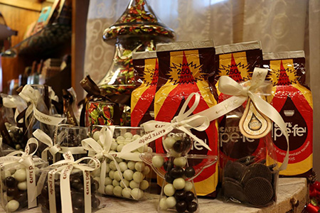 Panettoni al cioccolato con pasta al cacao, gocce di cioccolato, glassato al fondente e riccioli di cioccolato sono tra i prodotti realizzati dalla pasticceria Mille Voglie di Valentano, mentre il birrificio artigianale Aut Aut di Grotte di Castro propone, oltre alle classiche confezioni della loro pluripremiata birra, anche il panettone artigianale con marroni di Latera e rum in abbinamento al gel della loro iconica smoked Fumo di Londra e a una bottiglia da 75cl della stessa bevanda. Pistacchio, lampone e cioccolato, classico, triplo cioccolato e caramello salato sono le varianti del panettone proposte quest’anno da Il Borgo1957 di Bagnaia, mentre alla torrefazione Caffè Pe-Fè di Orte si possono trovare confezioni realizzate a mano non solo con le migliori miscele di caffè, ma anche con chicchi ricoperti al cioccolato, gelatine di caffè, cioccolato e cremini ripieni.