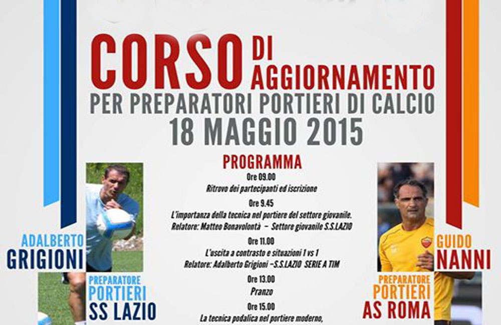 Relatori saranno due grandi professionisti della serie A; Adalberto Grigioni, Preparatore Portieri Ss Lazio e Guido Nanni, Preparatore Portieri As Roma.