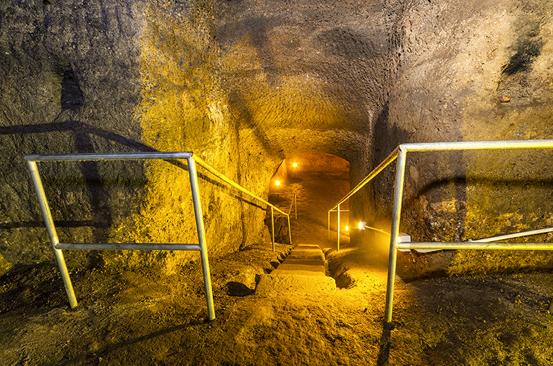 Dalle origini etrusche ai cunicoli medievali, dai covi dei briganti ai rifugi antiaerei. Nelle viscere dei palazzi dell’antichissimo centro storico di Viterbo, si snodano una serie di gallerie, man mano rese accessibili dai lavori di scavo ancora in corso. Gallerie e cunicoli risalgono all’epoca etrusca e conducono ben oltre l’antica cinta muraria. I nuovi percorsi “underground” sono ambienti di grande suggestione che ammaliano i visitatori. Lo straordinario sito sotterraneo emoziona e stupisce i turisti non solo per la grandezza degli spazi, ma anche per la suggestione che gli stessi evocano grazie alla loro antica storia. Dai cunicoli etruschi a quelli medioevali, dai rifugi della seconda guerra mondiale allo “studiolo” realizzato all’epoca dai tombaroli, dalle cisterne etrusche per l’acqua alle condotte idriche etrusche, fino ad arrivare in un ambiente di grande fascino: il più antico luogo di culto, sotterraneo, del centro storico di Viterbo.