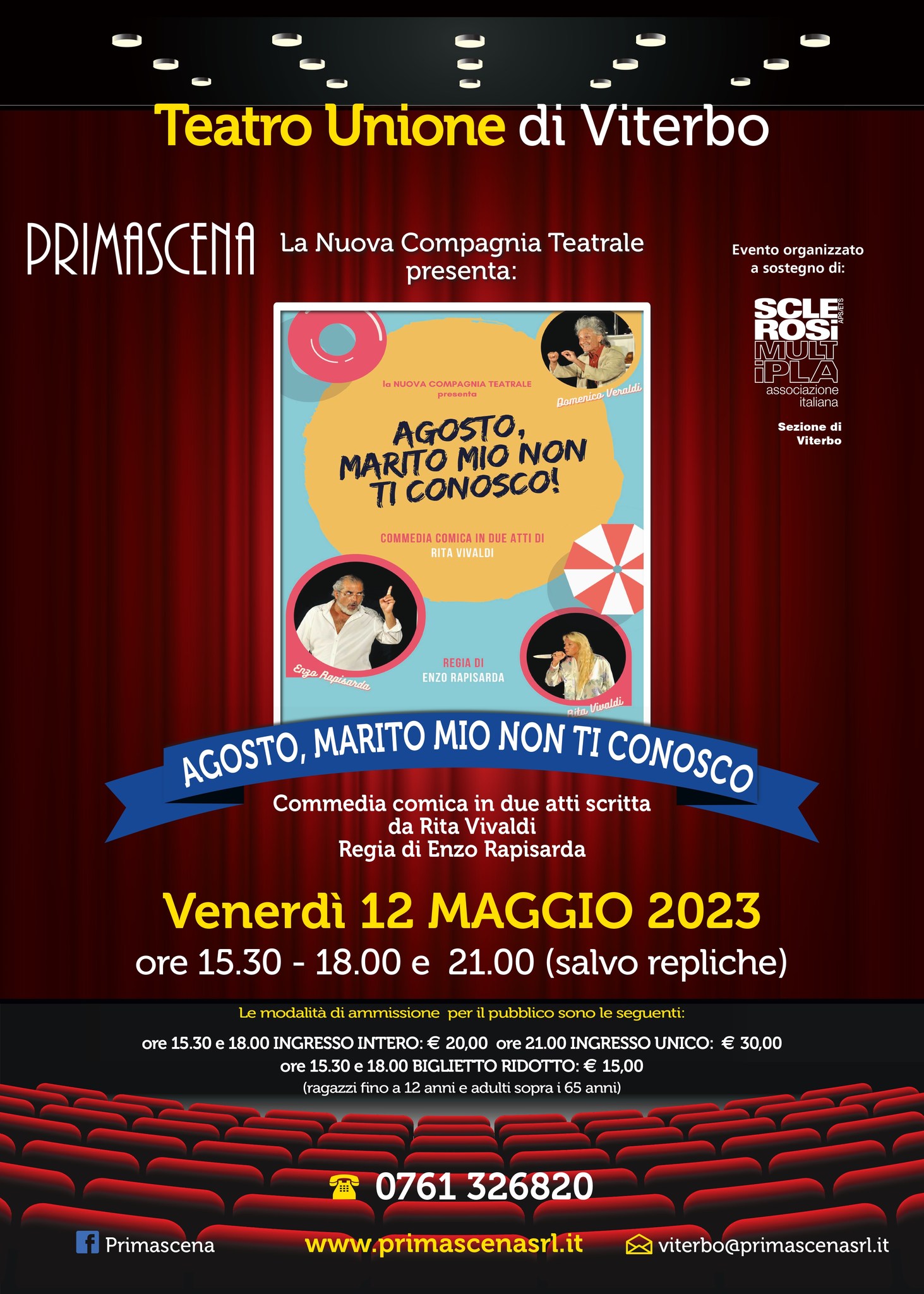 L’Associazione Italiana Sclerosi Multipla “Aism” ringrazia Primascena – agenzia di spettacolo, il direttore Anna Falesiede, la nuova compagnia teatrale e tutto lo staff che si è occupato dell’organizzazione dell’evento, ricordando che quanto realizzato è stato possibile anche grazie alla concessione della Sindaca Chiara Frontini e dal vice sindaco e assessore alla cultura Alfonso Antoniozzi.
