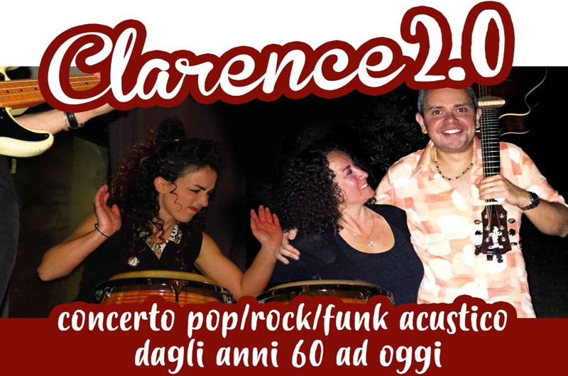 Venerdì 16 ottobre alle ore 21.00 sono in galleria prontissimi i Clarence 2.0, una serata imperdibile a ritmo di rock, pop, funk acustico dagli anni ’60 ad oggi. Chiara Celestini alla voce, accompagnata da Lorenzo Rutili alla chitarra e Roberta Sperduti alle percussioni ci porteranno in un viaggio sonoro variegato e originale: la modalità migliore per condividere una serata in allegria anche in tempi non semplici.