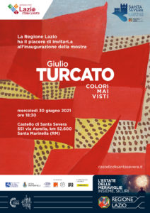 Dal 2 luglio al 3 ottobre, il Castello di Santa Severa, spazio della Regione Lazio gestito dalla società regionale LAZIOcrea in collaborazione con il Comune di Santa Marinella, ospita la mostra Giulio Turcato. Colori mai visti, a cura di Silvia Pegoraro, un progetto della Galleria d’Arte Marchetti di Roma con l’Archivio dell’opera di Giulio Turcato, promosso dalla Regione con l’organizzazione di LAZIOcrea.