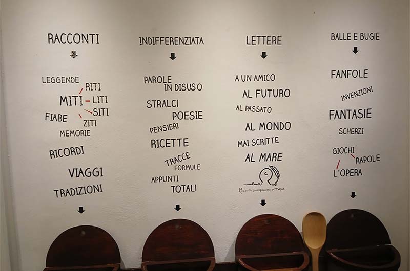 “Vi proponiamo un rapporto amoroso senza contatto fisico”. Non siamo di fronte a una surreale inserzione mediatica, ma è l’obiettivo concreto della “Raccolta differenziata di parole” che fino al prossimo 4 maggio sarà operativa al Museo dei Portici di Palazzo dei Priori. Tanta immaginazione soprattutto, frutto dello stato d’animo del momento, da congelare per un attimo, poi trasferire su un foglio di carta da imbucare, infine, in uno dei quattro contenitori sistemati all’interno della sala principale del museo. Un pensiero, tanti pensieri da destinare ai posteri. Come messaggi in bottiglia che potranno essere recuperati magari fra trenta, quaranta anni, perché tutti finiranno in una raccolta che resterà ermeticamente e gelosamente chiusa per tanto, tanto tempo. Non c’è, infatti, una data precisa fissata per l’apertura di questa cassaforte dei pensieri.