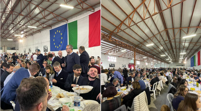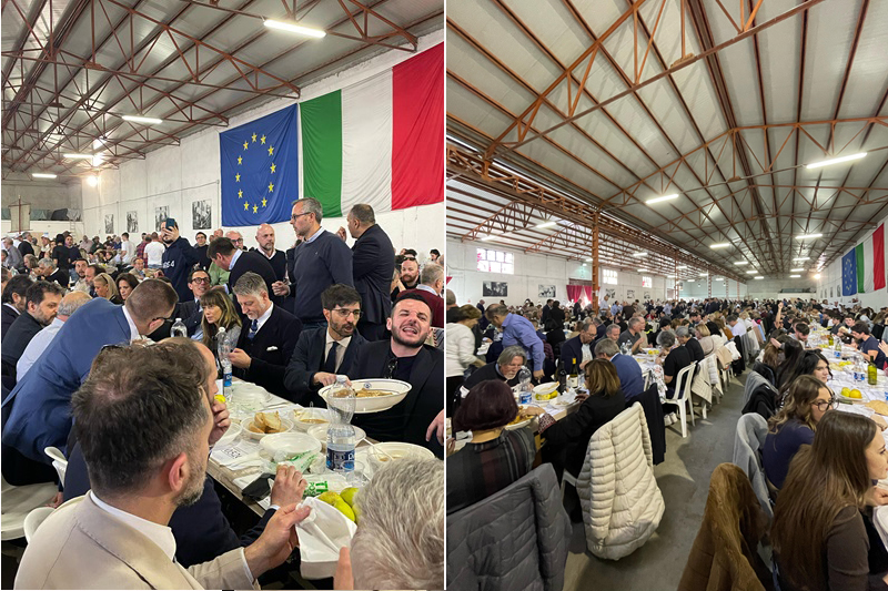 Al Pranzo del Purgatorio nella cantina sociale di Gradoli, in questo Mercoledì delle Ceneri tra i quasi 2.000 commensali è arrivato anche il ministro della Cultura Alessandro Giuli per celebrare una tradizione che è un autentico punto incontro tra territorio , cultura e gastronomia. Nello stesso tavolo tutto il gotha di Fratelli d’Italia, dal consigliere regionale  Daniele Sabatini, all’Onorevole Mauro Rotelli a Laura Allegrini. Foto di Michela Petrocchi