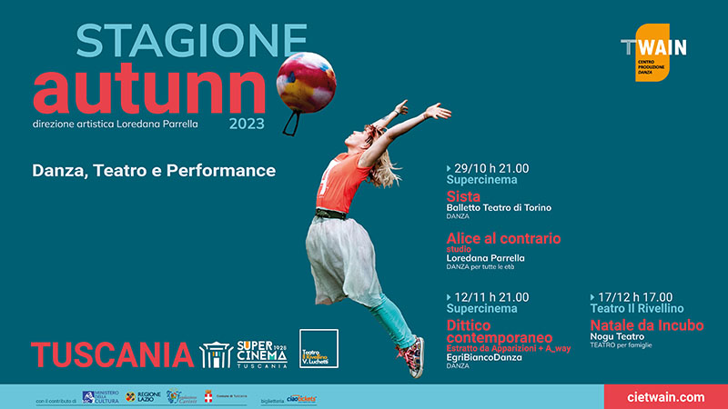 Prosegue con altri tre appuntamenti la stagione autunnale di danza, teatro e performance a Tuscania di Twain Centro Produzione Danza, con la direzione artistica di Loredana Parrella.