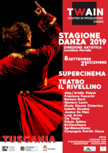 Dall’8 Settembre riparte la Stagione 2019 di Twain Centro di Produzione Danza Regionale e Centro di Residenza Multidisciplinare sostenuto dalla Regione Lazio e Mibac, con la Direzione Artistica di Loredana Parrella, presso il Supercinema e il Teatro Il Rivellino – V.Lucchetti di Tuscania (VT).