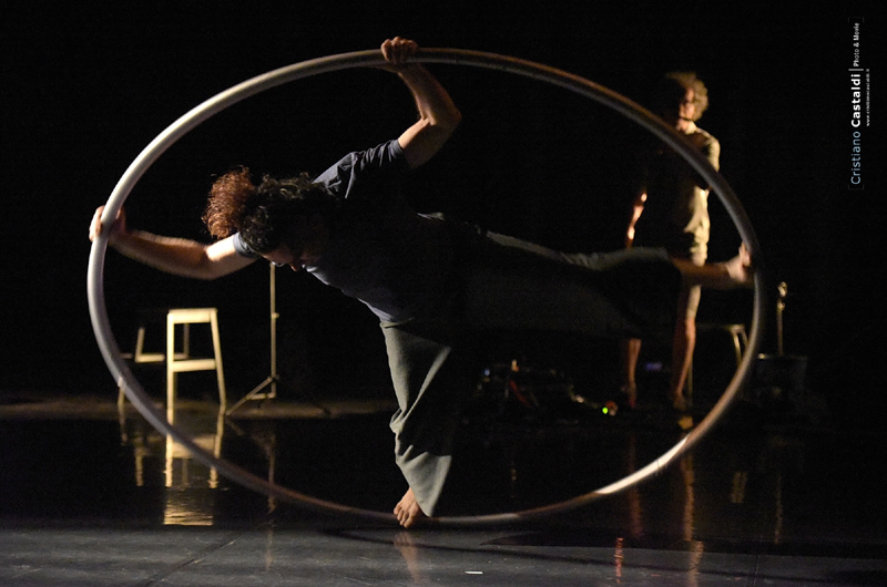 “Vorremmo – afferma Francesco Sgrò – che questo spettacolo potesse non essere catalogato, uno spettacolo che rifugga le classificazioni tra le arti, uno spettacolo che faccia del momento scenico e dell’incontro con il pubblico il motivo della sua stessa esistenza. Uno shock per chiunque sia abituato a dire questa non è danza, questo non è circo e questa non è musica. La danza, la musica e la giocoleria sono create contemporaneamente ognuna è creatrice dell’altra, Collapse non lavora separatamente le arti ma tratta tutto come se fosse un solo linguaggio, un solo modo di espressione.”