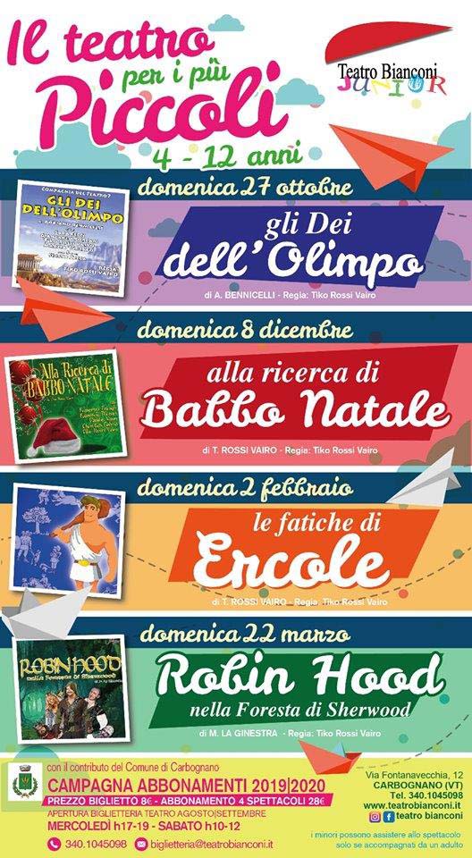La Stagione Junior, organizzata anche quest’anno con il contributo fondamentale del Comune di Carbognano, ha riscosso un immediato successo fin dalla sua presentazione e i tagliandi disponibili vanno rapidamente esaurendosi.