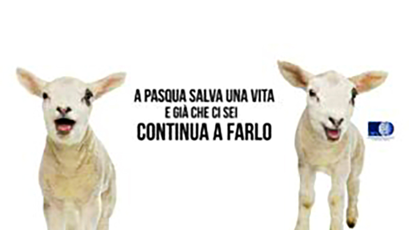 L’Organizzazione internazionale protezione animali (Oipa) quest’anno lancia una campagna web e social che invita a salvare l’agnello, ma non solo, con lo slogan: “A Pasqua salva una vita. E già che ci sei salvala sempre” (v. immagine in vari formati).