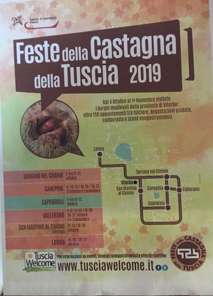 Francesco Di Biagi, sindaco di Latera, assicura di suo una buona produzione grazie alla cura che sta funzionando. La festa che si svolgerà il 19-20/ 26-27 Ottobre, vede protagonista la Locanda del Marrone, per degustazione di caldarroste; nel mercato artigianale si potrà assistire alla lavorazione del latte e alla degustazione anche del formaggio. Tanto vino locale, tanto intrattenimento per i bimbi e musica con le bande itineranti.