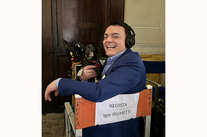 Igor Righetti, regista e sceneggaitore del docufilm Alberto Sordi secret, con il suo inseparabile bassotto Byron