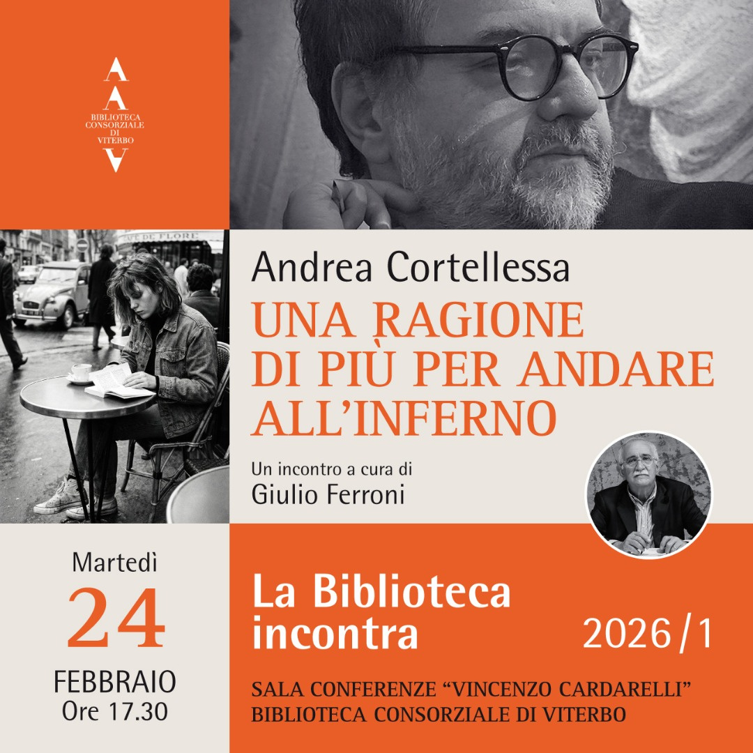 Martedì 24 febbraio, alle 17.30, per il nuovo appuntamento della rassegna “La Biblioteca incontra” – stagione 1/2026, Andrea Cortellessa presenterà il libro Una ragione di più per andare all’inferno. Vedere, Pasolini (Treccani Libri), in dialogo con Giulio Ferroni.