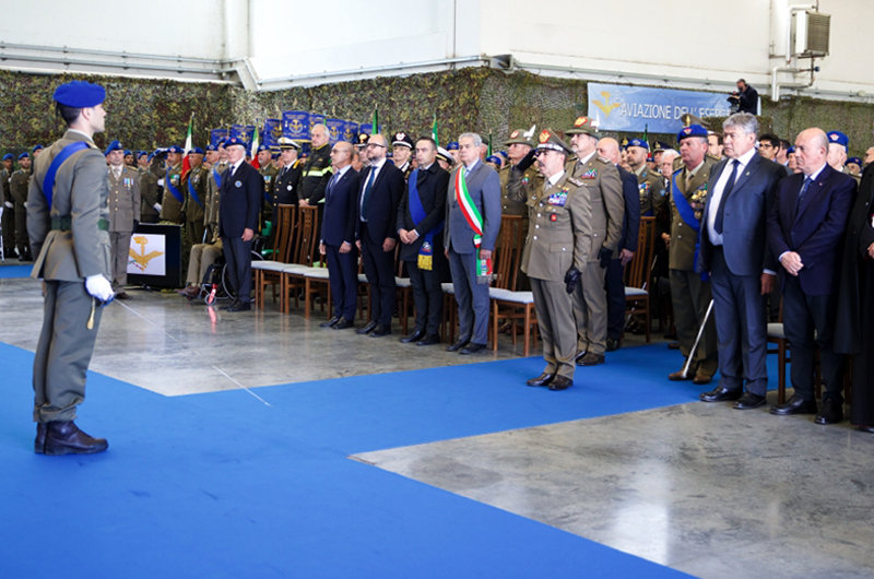 Prima della cerimonia, il Comandante dell’Aviazione dell’Esercito, Generale di Brigata Paolo Riccò, con i vertici dell’Associazione Nazionale Aviazione dell’Esercito e i rappresentanti della Città e della Provincia viterbese, ha deposto una corona di alloro al monumento ai Caduti dell’AVES per onorare la memoria di quanti, nell’adempimento del proprio dovere, hanno sacrificato la propria vita per la Patria.