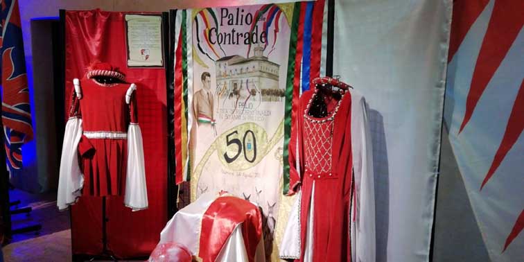 Se la gara vera e propria si esaurisce in una ventina di minuti, nel tardo pomeriggio della domenica, lo spirito del Palio pervade il paese e i suoi abitanti per tutto l’anno. E’ sempre stato così, fin da quando un sindaco lungimirante, Riccardo Rinaldi, si inventò la manifestazione, dividendo il paese in sei contrade, per ridare coesione e spirito di appartenenza a una realtà che rischiava di sfaldarsi con la graduale chiusura della principale attività produttiva in loco, le cave d’allume, nate sotto lo Stato Pontificio. Rinaldi, oggi 92enne in gamba è stato presente, accanto all’attuale sindaco Antonio Pasquini, in tutte le occasioni in cui Pro Loco e amministrazione comunale, insieme all’associazione Eureka e alle Contrade hanno illustrato il Palio numero 55. Non solo corsa degli asini, appunto, ma molto di più: il Palio è la punta di un iceberg formato dalla collaborazione e cooperazione tra gli abitanti e funge anche da legame tra vecchie e nuove generazioni. La gara infatti è preceduta dal corteo storico (250 figuranti, dal 2018 vanta il patrocinio del Mibac) e dall’esibizione degli sbandieratori. Sono due momenti di estrema importanza per ogni contradaiolo e – come spiegato sia dalle assessori Brunella Franceschini che Tiziana Cimaroli che dalla presidente Pro Loco Tiziana Franceschini – si portano dietro un lungo e accurato lavoro di ricerca storica e di impegno da parte delle sarte che cuciono i costumi, anno dopo anno sempre migliori e sempre più rispondenti a quelli del tempo di Agostino Chigi, banchiere senese cui si deve la nascita del primo nucleo abitato nei primi anni del 1500. A scegliere la migliore sfilata di ogni edizione è chiamata una giuria di esperti antropologi e costumisti, pronti a notare ogni particolare difforme. A giudicare la bravura degli sbandieratori e dei tamburini, molti giovanissimi con la presenza di qualche ragazza, sono invece gli esponenti viterbesi del Gruppo della Contrada Trinità di Soriano nel Cimino, pluripremiati a livello nazionale e internazionale.