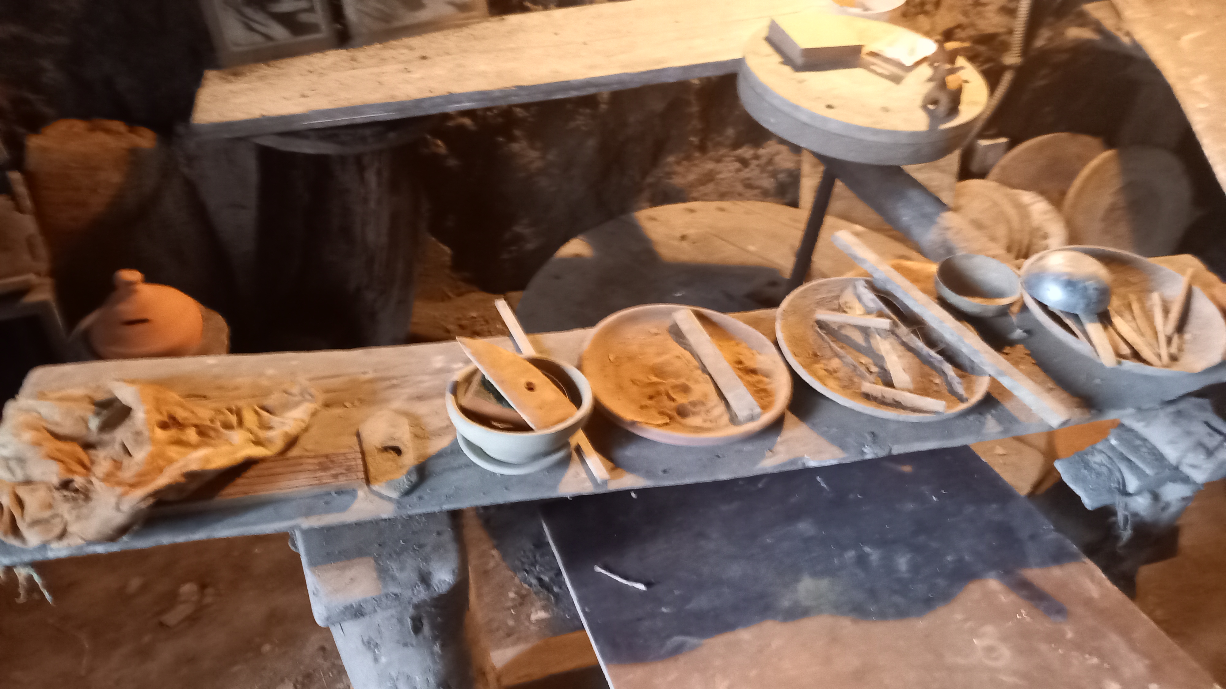 “A questo punto veniva presa la polvere e impastata con l’acqua per farne dei panetti. Dopo qualche giorno, quando aveva perso un po’ di umidità e quindi era più consistente, ma era ancora malleabile, si metteva sul tornio per la lavorazione. E si creavano gli oggetti più vari”.