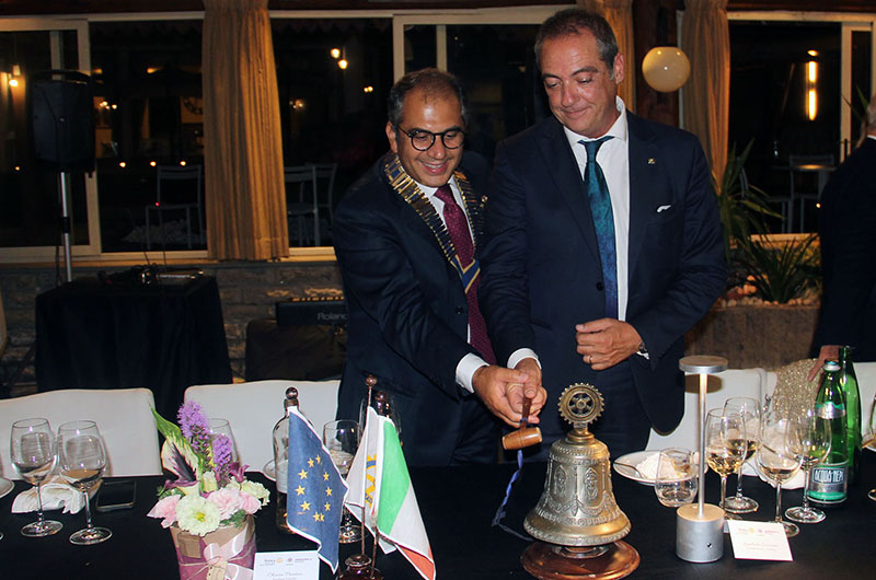 E’ il momento ufficiale, la presidenza di Lamberto Scorzino lascia il posto a quella di Angelo Landi, che riceve la spilletta e soprattutto il collare, tra gli applausi dei soci. “Grazie a Lamberto che ha portato il club a livelli internazionali con una forza centrifuga incredibile, grazie per il tuo grande lavoro – ha salutato da neo presidente -. Grazie ai soci per la fiducia, alla mia famiglia che si metterà a disposizione in questo importante anno per il percorso che faremo. ‘Creiamo speranza nel mondo’ è il motto di questo anno che si rifletterà sul tema della pace, al centro di tutte le nostre iniziative. Noi rotariani dobbiamo avere il giusto spirito di servizio a favore della comunità, verso cui convergiamo le nostre azioni ed iniziative. Dobbiamo per questo essere irresistibili, essere leader e non influencer senza, pertanto, alcuna ostinata ricerca della celebrità. Poiché – ha continuato il neo Presidente citando una celebre frase dalle favole di Esopo – ‘Per vincere non è necessario correre ma partire in tempo’, anticipo ai soci che, unitamente a tutto il direttivo, è stato già stilato il programma dell’intero anno rotariano, compresa la festa del nostro settantesimo anniversario di costituzione, per consentire di mettere già in agenda tutti gli incontri istituzionali a cui partecipare. Il primo appuntamento sarà per il prossimo 20 luglio, al fresco dei castagni, con la presentazione del calendario delle iniziative e dei progetti”.