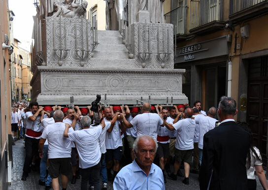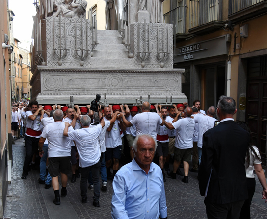 Prova superata, si è detto. Il passaggio soprattutto serviva a prendere le misure giuste nei punti più in criticità, come largo Cesare Battisti e la chiesa di Sant’Egidio e gli altri dove Dies Natalis per muoversi ha pochi centimetri di autonomia. Una Macchina, Dies Natalis, che, come tutte le altre, deve raccontare una storia che si contestualizzi nel presente.