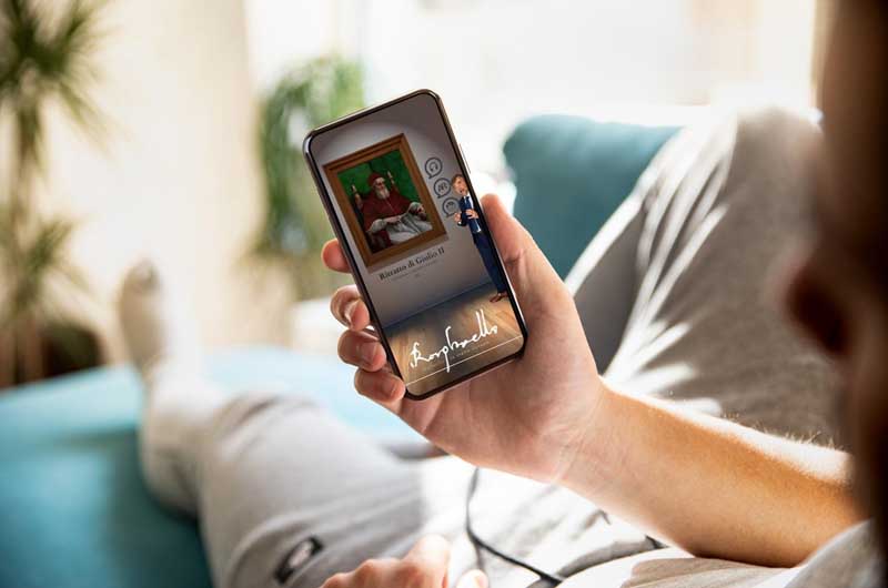 Le 22 opere grazie ad un sofisticato sistema di Realtà Aumentata diventano opere interattive che raccontano la loro storia e quella del Maestro Sanzio. Raffaello interpretato da Ivo Randaccio spiegherà i dettagli delle opere, ma non è solo, sono più di 30 le persone che hanno risposto alla call sui social e hanno dato vita a questo meraviglioso progetto dando la voce a ogni opera.