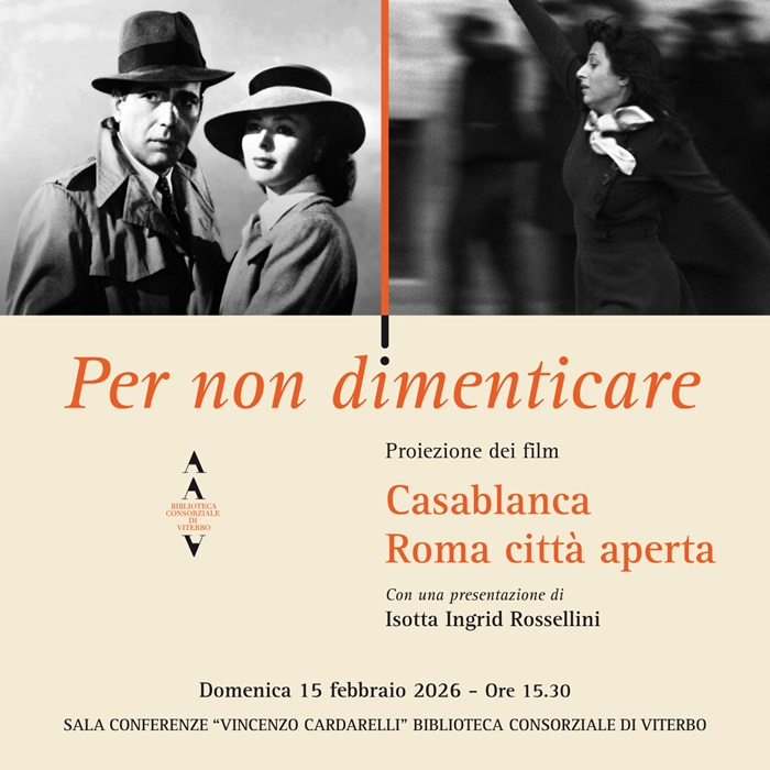 domenica 15 febbraio alle ore 15.30  ospiterà un appuntamento speciale con la proiezione di due capolavori del cinema: “Casablanca” e “Roma città aperta”.