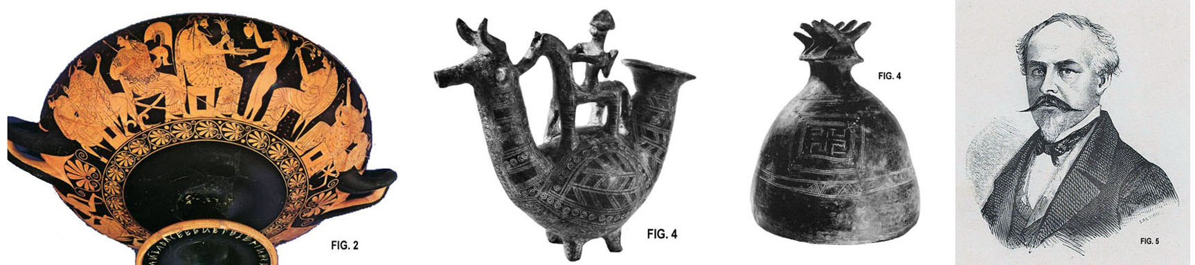 Le cose andarono così. Gli Etruschi dell’età del Ferro furono chiamati “Villanoviani” a seguito della scoperta nel 1853 in località Villanova di Castenaso (presso Bologna) di una necropoli piuttosto singolare per la tipologia delle sepolture e, soprattutto, per le caratteristiche dei materiali che ne costituivano i corredi funerari (figg. 3-4). Alla metà del XIX secolo gli studi etruscologici avevano fatto notevoli progressi rispetto al secolo precedente e quindi l’autore della scoperta, il conte Giovanni Gozzadini (fig. 5), essendosi reso conto dell’importanza di queste testimonianze archeologiche non ancora documentate in letteratura, non solo attribuì loro immediata e qualificata diffusione (pubblicandole in due monografie nel 1854 e nel 1856) ma ebbe anche l’intuizione che si trattasse delle più antiche testimonianze della civiltà etrusca, anticipando così le conclusioni a cui sarebbero giunti gli studi etruscologici della seconda metà del XX secolo, soprattutto per merito di Massimo Pallottino.